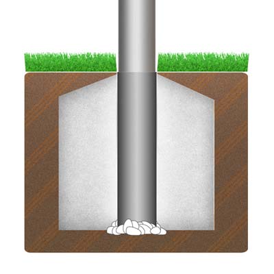 Für den Einbau der Masten gibt es die klassische Bodenhülse. Dies ist ein Rohr, in das der Mast nach dem Aushärten des Betons nur noch eingestellt wird. Ab 90mm Mastdurchmesser gibt es alternativ eine Zentrierhülse, die einen zusätzlichen Zentrierring hat, der verhindert, dass Staub ö.Ä. zwischen Mast und Hülse fällt und das Herausnehmen des Mastens bei Bedarf erschwert. Alternativ gibt es eine Kipphalterung, die besonders bei den größeren Mastmodellen das Aufstellen erleichtert.