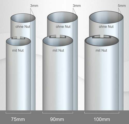 Je nach Fahnengröße oder Masthöhe, sind verschiedene Maststärken von 75 mm bis 100 mm erhältlich.